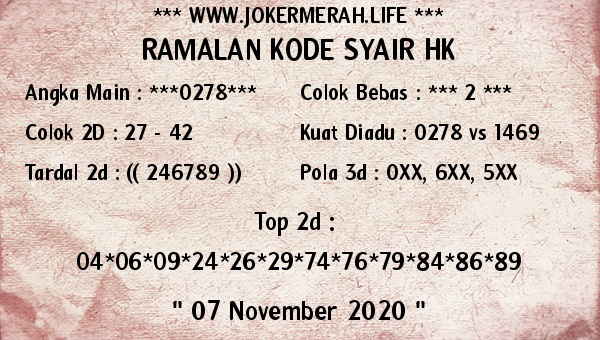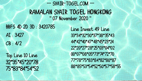 Kode Syair Hk Sabtu 07 November 2020 meliputi forum syair Hongkong , paito warna hk serta prediksi togel hk dan di lengkapi juga dengan data pengeluaran Hk 2020 .