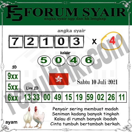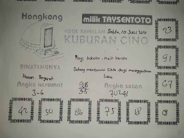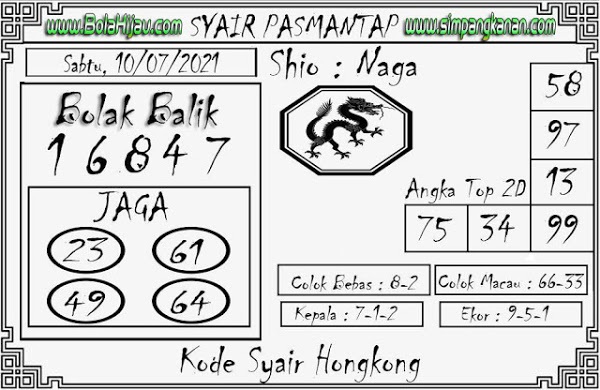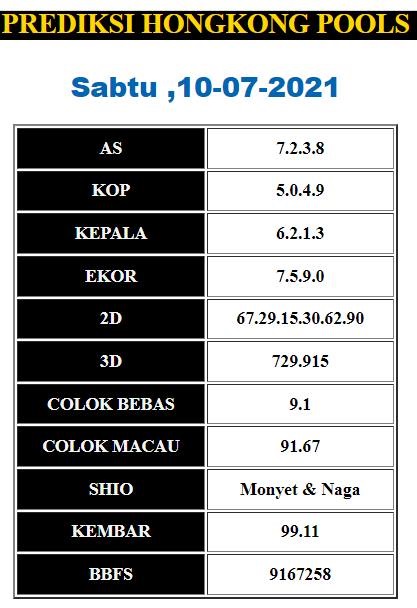 Kode Syair Hk Sabtu 10 Juli 2021 , meliputi forum syair Hongkong , Bocoran hk serta prediksi togel hk dan di lengkapi juga dengan data pengeluaran Hk 2021 .