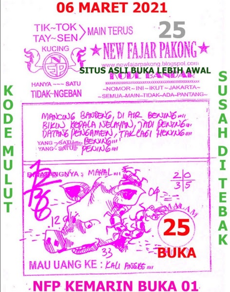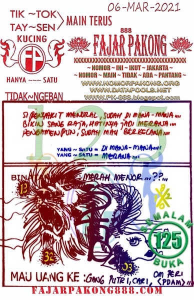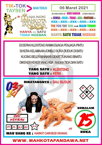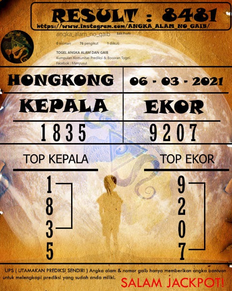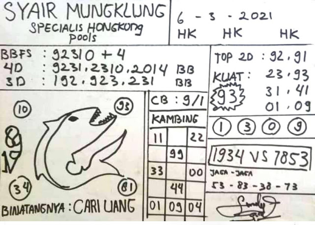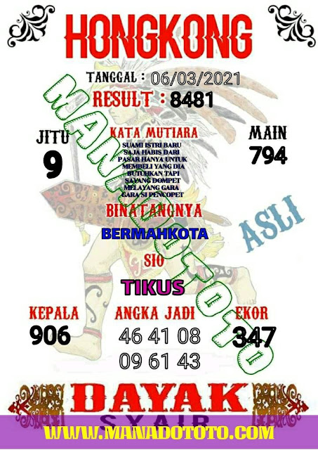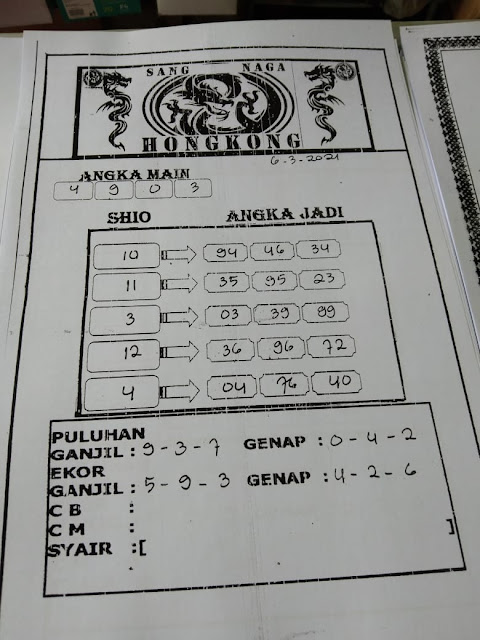 Syair Hk Sabtu 6 Maret 2021