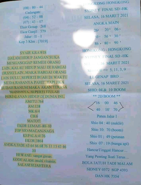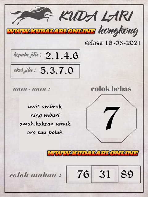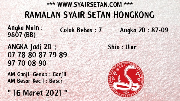 Kode Syair Hk Selasa 16 Maret 2021 meliputi forum syair Hongkong , paito warna hk serta prediksi togel hk dan di lengkapi juga dengan data pengeluaran Hk 2020 .