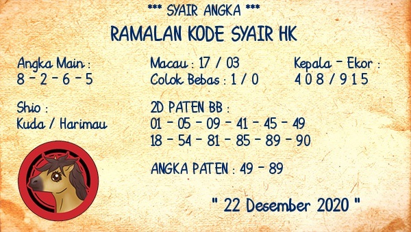 Kode Syair Hk Selasa 22 Desember 2020 meliputi forum syair Hongkong , paito warna hk serta prediksi togel hk dan di lengkapi juga dengan data pengeluaran Hk 2020 .