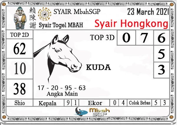 Kode Syair Hk Selasa 23 Maret 2021 meliputi forum syair Hongkong , paito warna hk serta prediksi togel hk dan di lengkapi juga dengan data pengeluaran Hk 2020 .
