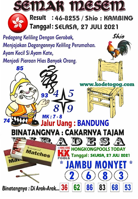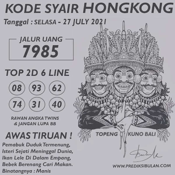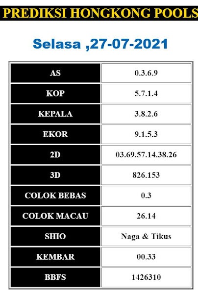 Kode Syair Hk Selasa 27 Juli 2021 , meliputi forum syair Hongkong , Bocoran hk serta prediksi togel hk dan di lengkapi juga dengan data pengeluaran Hk 2021 .