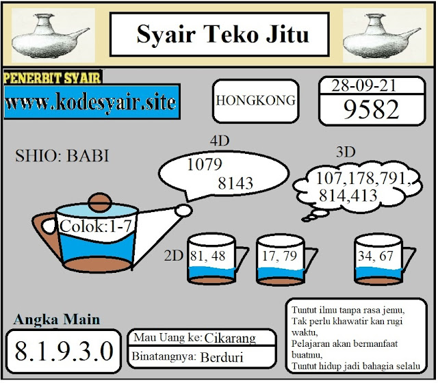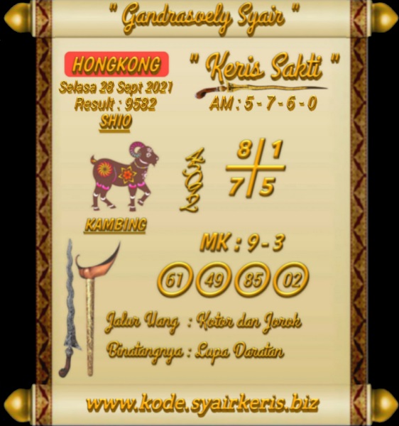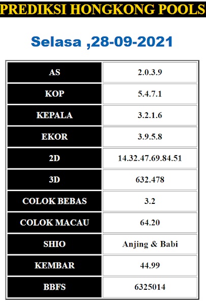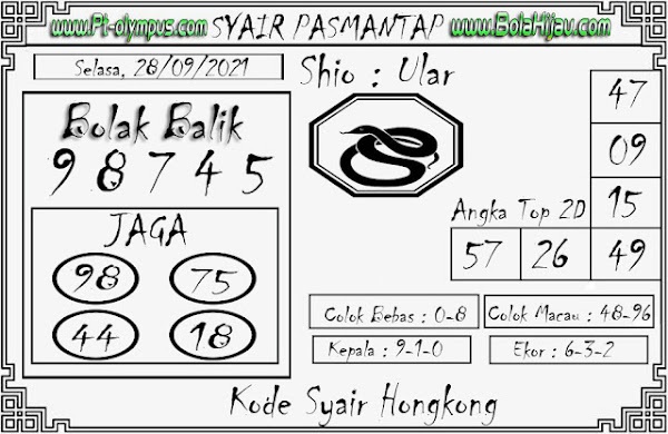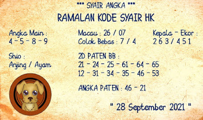 Kode Syair Hk Selasa 28 September 2021 , meliputi forum syair Hongkong , Bocoran hk serta prediksi togel hk dan di lengkapi juga dengan data pengeluaran Hk 2021 .