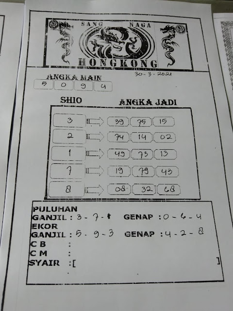 Syair Hk Selasa 30 Maret 2021
