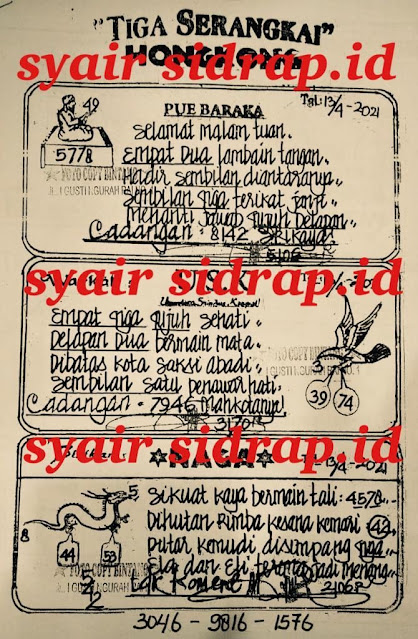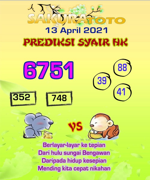 Kode Syair Hk Senin 13 April 2021 , meliputi forum syair Hongkong , Bocoran hk serta prediksi togel hk dan di lengkapi juga dengan data pengeluaran Hk 2021 .