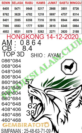 Syair Hk Senin 14 Desember 2020