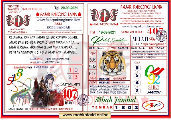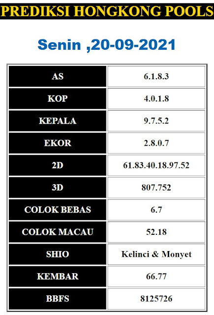 Syair Hk Senin 20 September 2021