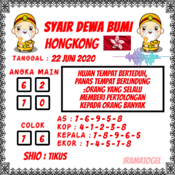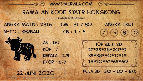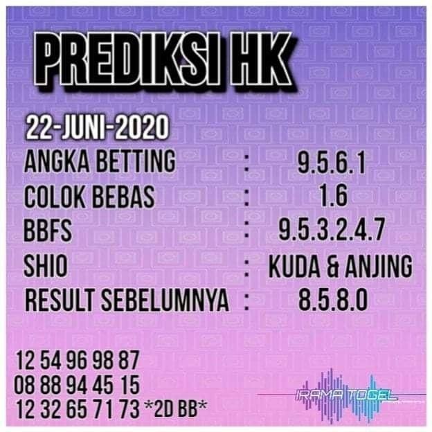 Kode Syair Hk Senin 22 Juni 2020 meliputi forum syair Hongkong , paito warna hk serta prediksi togel hk dan di lengkapi juga dengan data pengeluaran Hk 2020 .