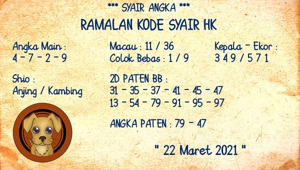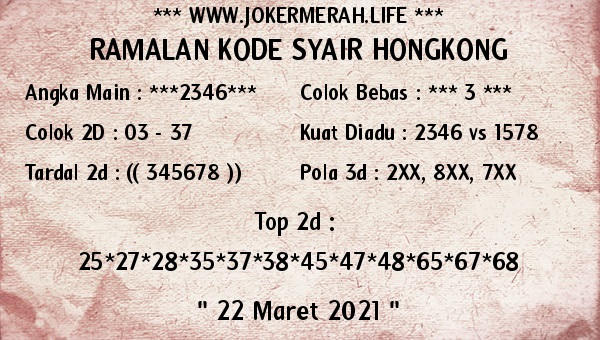 Kode Syair Hk Senin 22 Maret 2021 meliputi forum syair Hongkong , paito warna hk serta prediksi togel hk dan di lengkapi juga dengan data pengeluaran Hk 2020 .