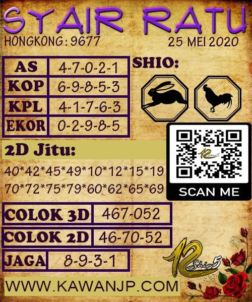 Kode Syair Hk Senin 25 Mei 2020 meliputi forum syair Hongkong , paito warna hk serta prediksi togel hk dan di lengkapi juga dengan data pengeluaran Hk 2020 .