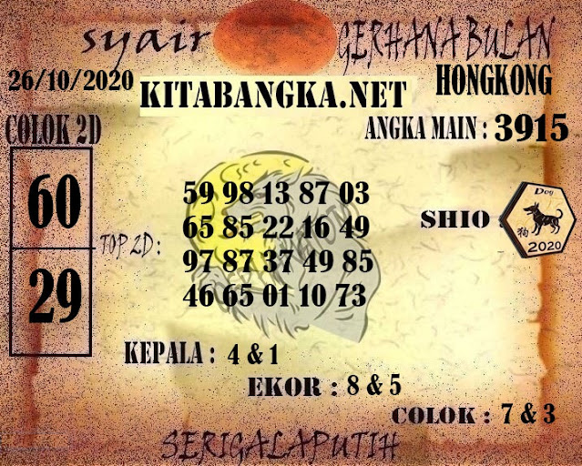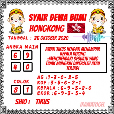 Kode Syair Hk Senin 26 Oktober 2020 meliputi forum syair Hongkong , paito warna hk serta prediksi togel hk dan di lengkapi juga dengan data pengeluaran Hk 2020 .