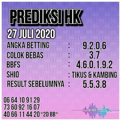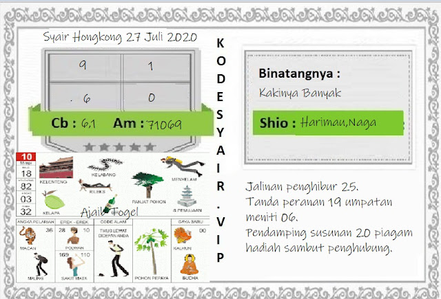 Syair Hk Senin 27 Juli 2020