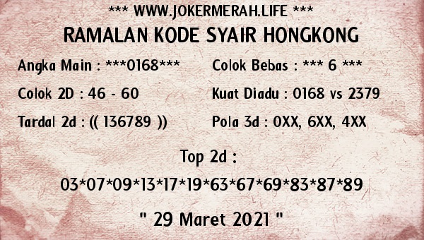 Kode Syair Hk Senin 29 Maret 2021, meliputi forum syair Hongkong , paito warna hk serta prediksi togel hk dan di lengkapi juga dengan data pengeluaran Hk 2021 .