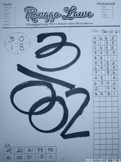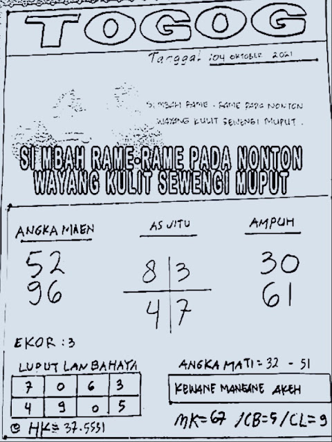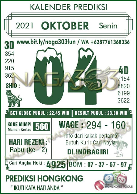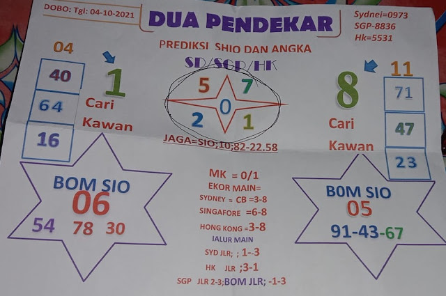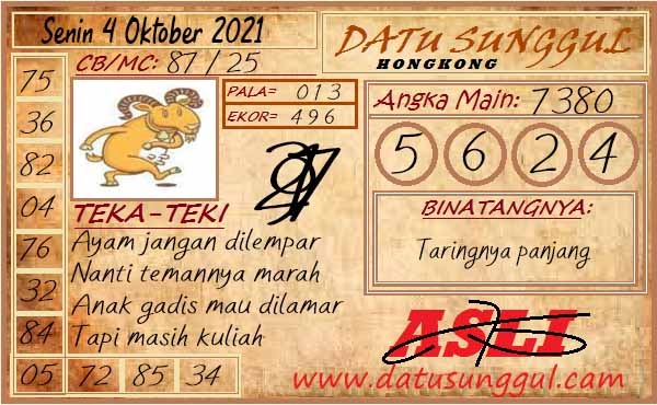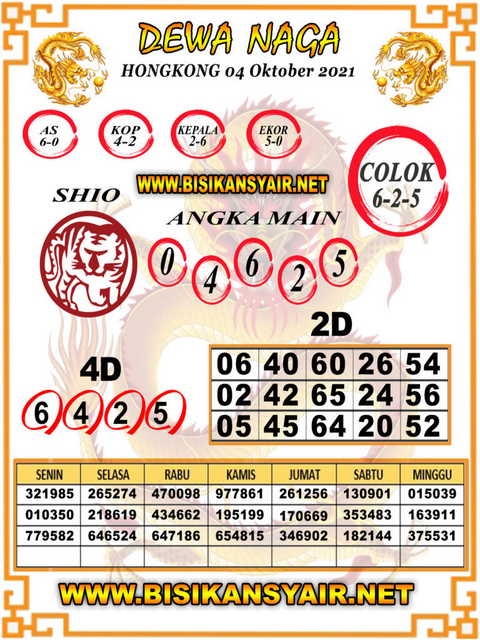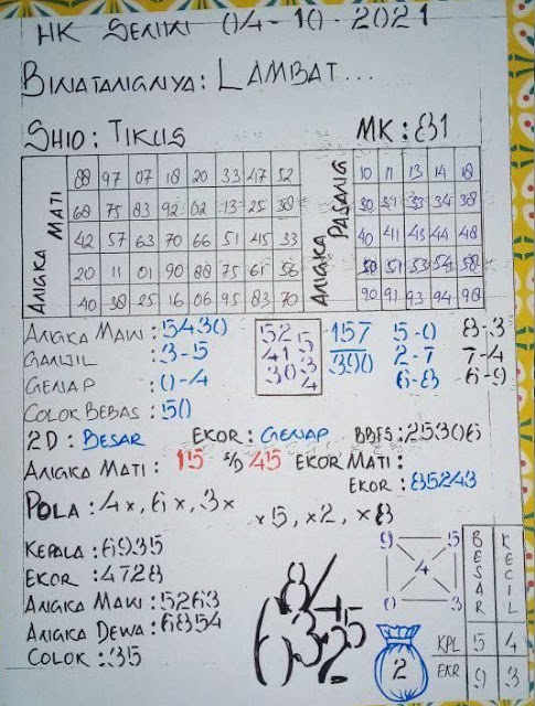 Bocoran Hongkong hari ini 4 10 2021