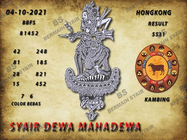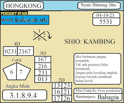 Kode Syair Hk Senin 4 Oktober 2021 , meliputi forum syair Hongkong , Bocoran hk serta prediksi togel hk dan di lengkapi juga dengan data pengeluaran Hk 2021 .