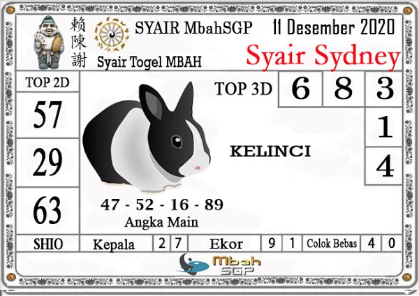 Kode Syair Sdy Jumat 11 desember 2020 meliputi forum syair sydney , paito warna sdy serta prediksi togel sidney dan di lengkapi juga dengan data pengeluaran sdy 2020 .