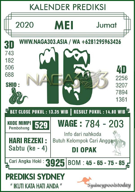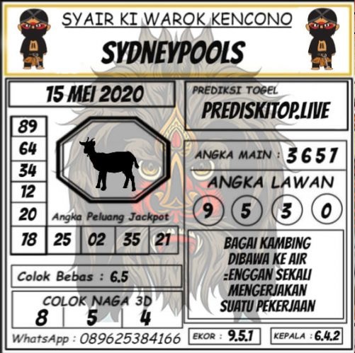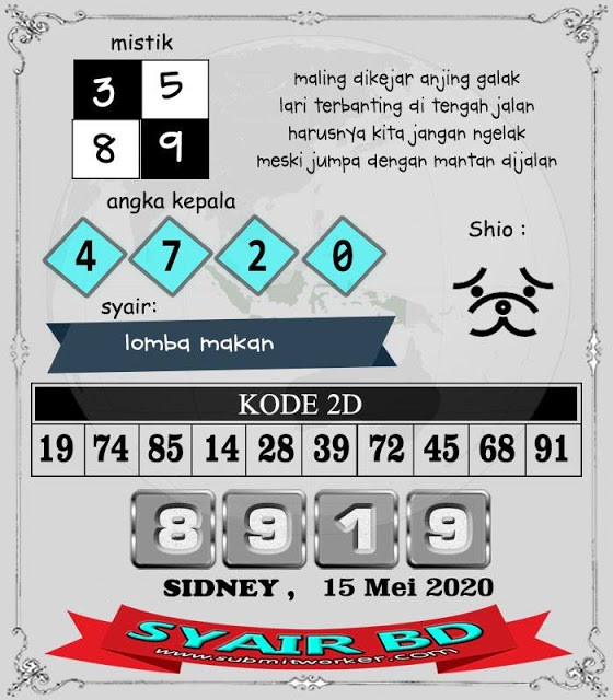 Kode Syair sdy Jumat 15 Mei 2020 meliputi forum syair sydney , paito warna sdy serta prediksi togel sidney dan di lengkapi juga dengan data pengeluaran sdy 2020 .