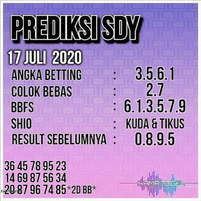 Prediksi togel Syair Sdy Jumat 17 Juli 2020