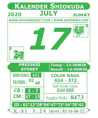 Kode Syair Sdy Jumat 17 Juli 2020 meliputi forum syair sydney , paito warna sdy serta prediksi togel sidney dan di lengkapi juga dengan data pengeluaran sdy 2020 .