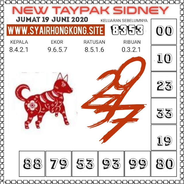 Kode Syair Sdy Jumat 19 Juni 2020 meliputi forum syair sydney , paito warna sdy serta prediksi togel sidney dan di lengkapi juga dengan data pengeluaran sdy 2020 .