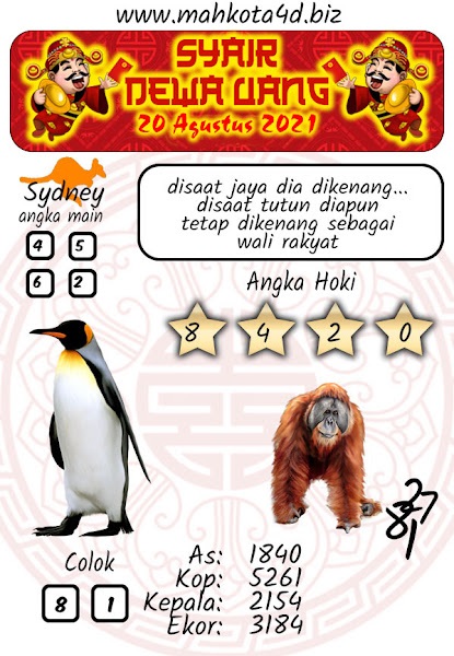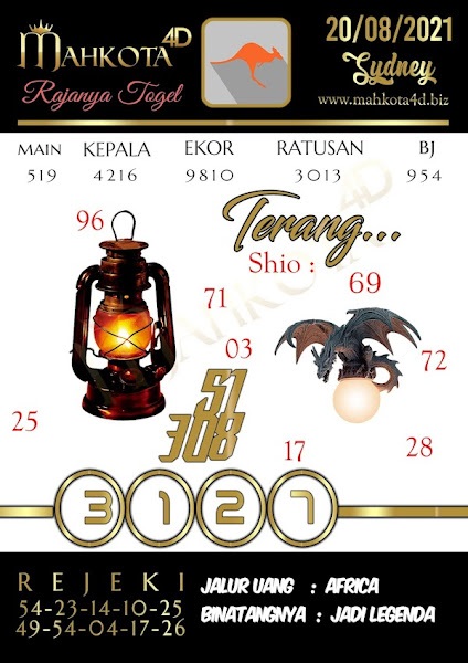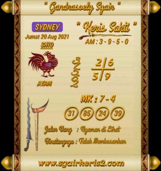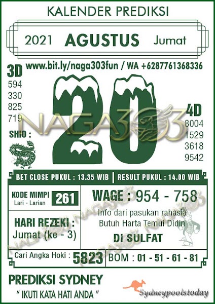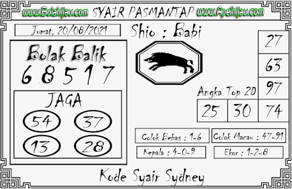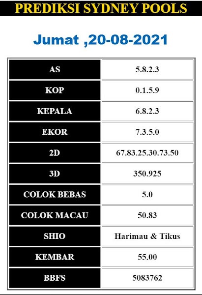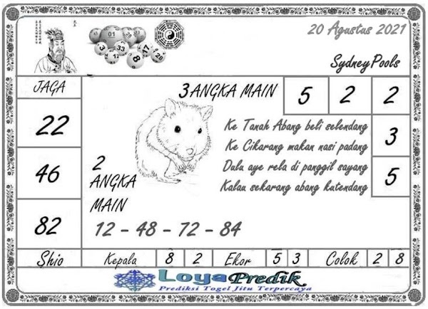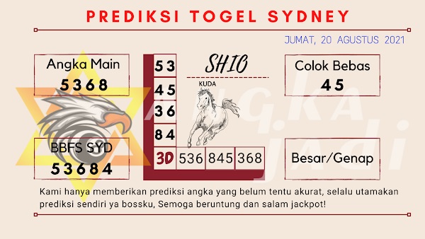 Kode Syair Sdy Jumat 20 Agustus 2021 , meliputi forum syair sydney , Bocoran sdy serta prediksi togel sidney dan di lengkapi juga dengan data pengeluaran sdy 2021 .