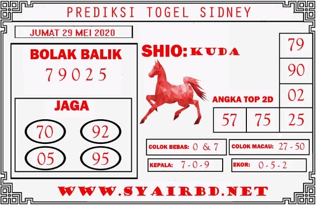 Kode Syair sdy Jumat 29 Mei 2020 meliputi forum syair sydney , paito warna sdy serta prediksi togel sidney dan di lengkapi juga dengan data pengeluaran sdy 2020 .