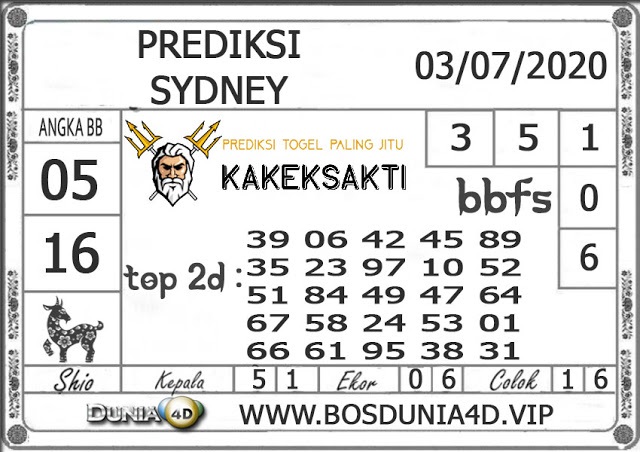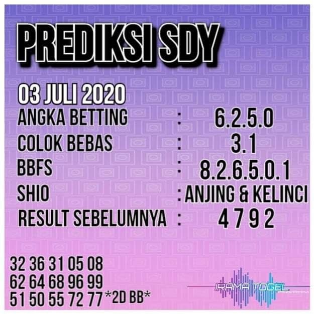 Prediksi togel Sdy hari ini 03 Juli 2020