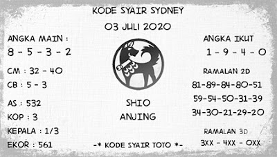 Kode Syair Sdy Jumat 3 Juli 2020 meliputi forum syair sydney , paito warna sdy serta prediksi togel sidney dan di lengkapi juga dengan data pengeluaran sdy 2020 .