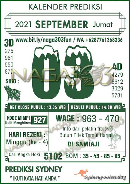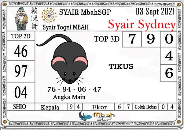 Kode Syair Sdy Jumat 3 September 2021 , meliputi forum syair sydney , Bocoran sdy serta prediksi togel sidney dan di lengkapi juga dengan data pengeluaran sdy 2021 .