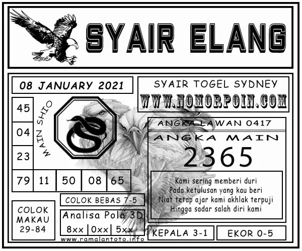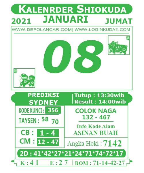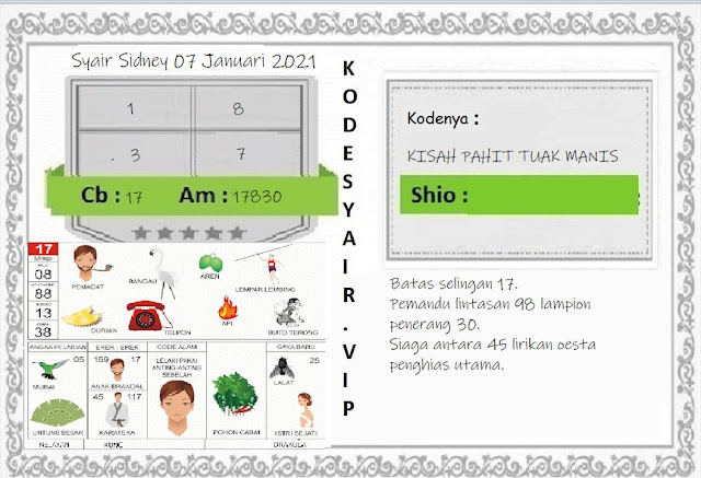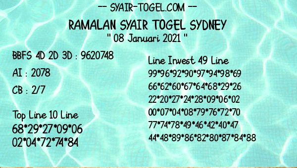 Kode Syair Sdy Jumat 8 Januari 2021 meliputi forum syair sydney , paito warna sdy serta prediksi togel sidney dan di lengkapi juga dengan data pengeluaran sdy 2020 .