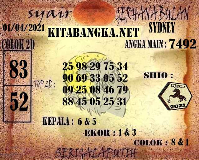 Kode Syair Sdy Kamis 1 April 2021, meliputi forum syair sydney , paito warna sdy serta prediksi togel sidney dan di lengkapi juga dengan data pengeluaran sdy 2021 .