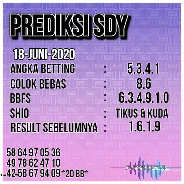 Prediksi togel Sdy hari ini 18 Juni 2020
