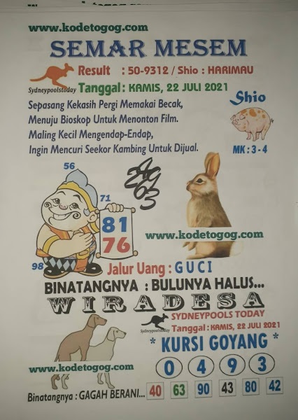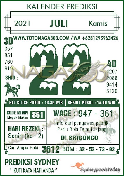 Kode Syair Sdy Kamis 22 Juli 2021, meliputi forum syair sydney , Bocoran sdy serta prediksi togel sidney dan di lengkapi juga dengan data pengeluaran sdy 2021 .