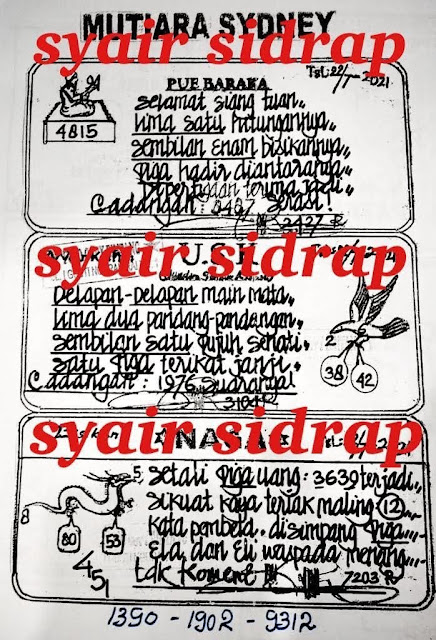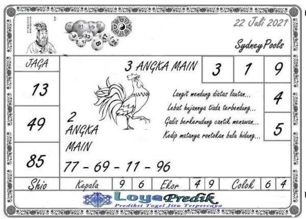 alhasil Forum code syair sidney akan di lengkapi paling cepat dan terlengkap seluruh nya pada pukul 10.30 pagi, sebalik nya untuk prediksi akan lebih cepat kalau data sdy 2021 akan di tambahkan pada jam result sdy .