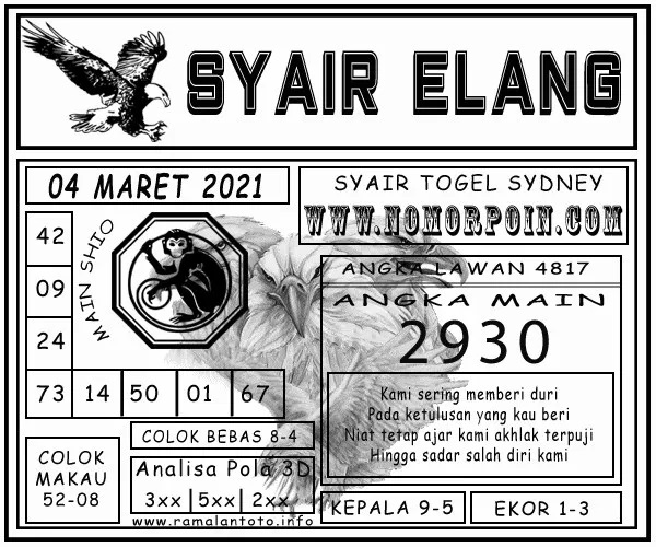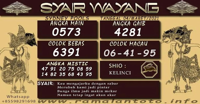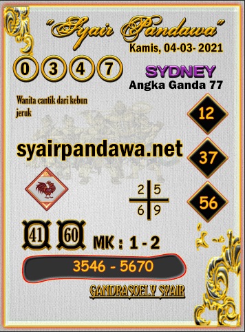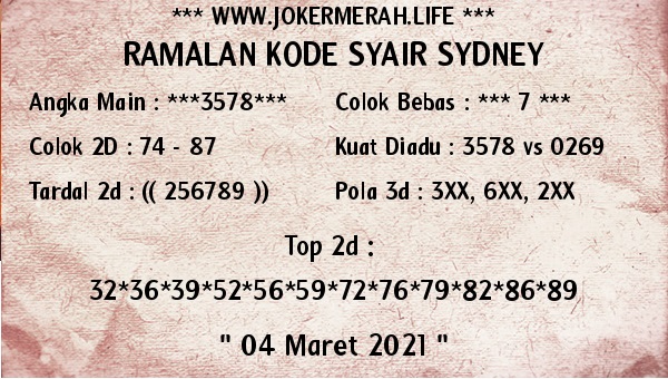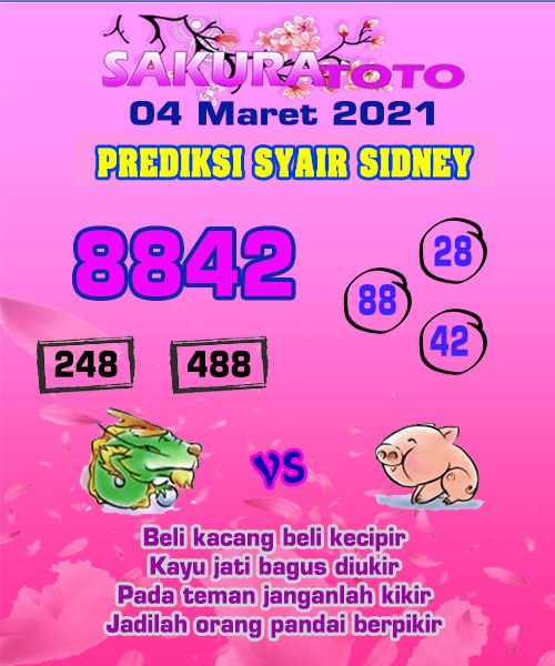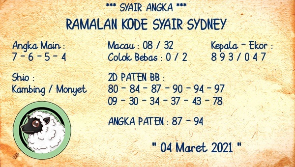 Kode Syair Sdy Kamis 4 Maret 2021, meliputi forum syair sydney , paito warna sdy serta prediksi togel sidney dan di lengkapi juga dengan data pengeluaran sdy 2020 .