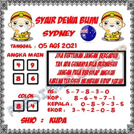 Kode Syair Sdy Kamis 5 Agustus 2021 , meliputi forum syair sydney , Bocoran sdy serta prediksi togel sidney dan di lengkapi juga dengan data pengeluaran sdy 2021 .