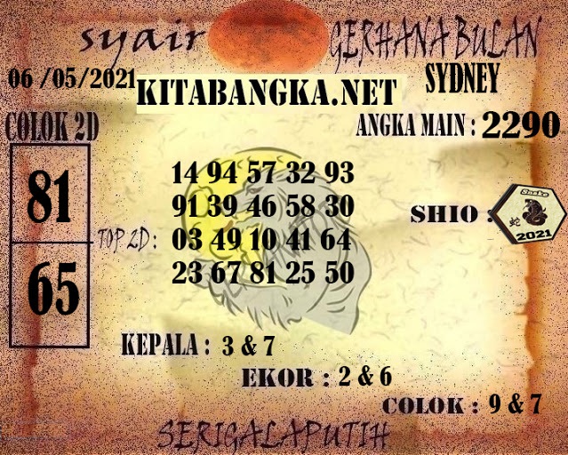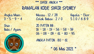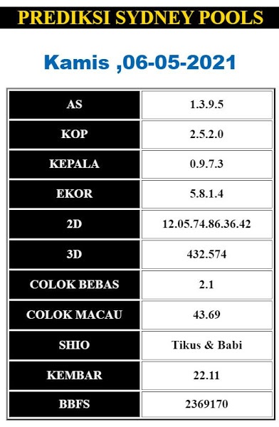 Kode Syair Sdy Kamis 6 Mei 2021, meliputi forum syair sydney , Bocoran sdy serta prediksi togel sidney dan di lengkapi juga dengan data pengeluaran sdy 2021 .