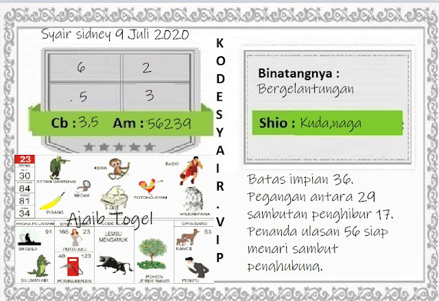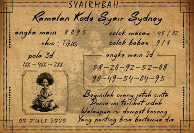 Kode Syair Sdy Kamis 9 Juli 2020 meliputi forum syair sydney , paito warna sdy serta prediksi togel sidney dan di lengkapi juga dengan data pengeluaran sdy 2020 .