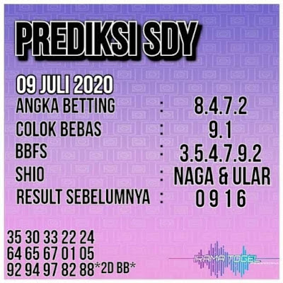 Prediksi togel Sdy hari ini 09 Juli 2020