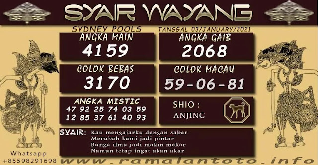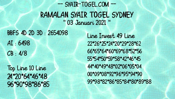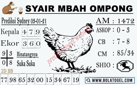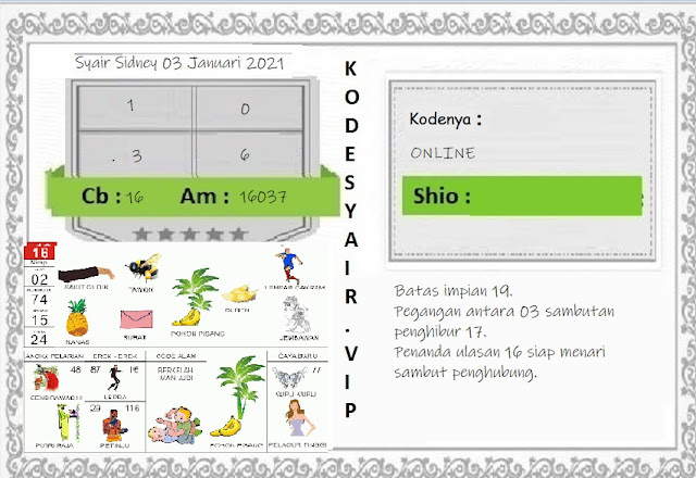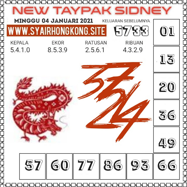 Kode Syair Sdy Minggu 03 Januari 2021 meliputi forum syair sydney , paito warna sdy serta prediksi togel sidney dan di lengkapi juga dengan data pengeluaran sdy 2020 .