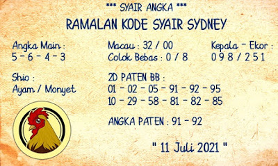Kode Syair Sdy Minggu 11 Juli 2021, meliputi forum syair sydney , Bocoran sdy serta prediksi togel sidney dan di lengkapi juga dengan data pengeluaran sdy 2021 .