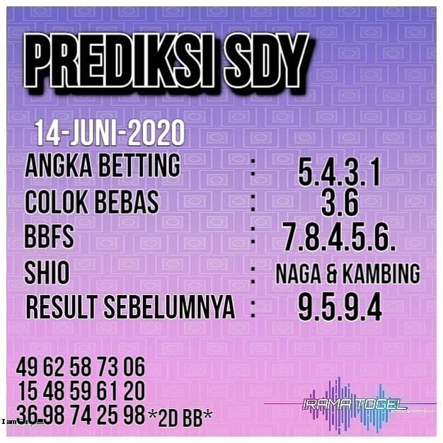 Prediksi togel Sdy hari ini 14 Juni 2020
