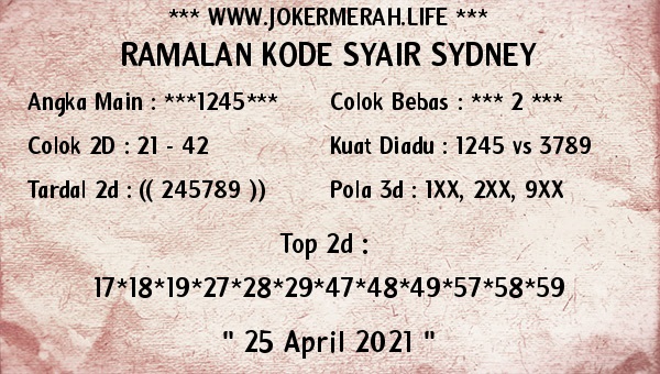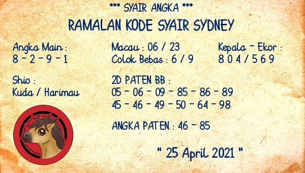 Kode Syair Sdy Minggu 25 April 2021, meliputi forum syair sydney , Bocoran sdy serta prediksi togel sidney dan di lengkapi juga dengan data pengeluaran sdy 2021 .