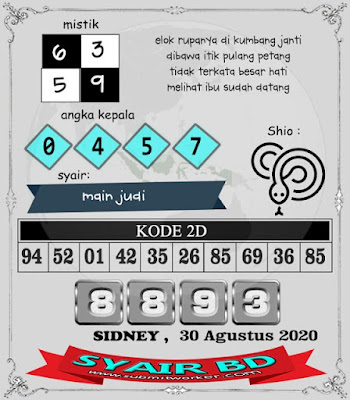 Kode Syair Sdy Minggu 30 Agustus 2020 meliputi forum syair sydney , paito warna sdy serta prediksi togel sidney dan di lengkapi juga dengan data pengeluaran sdy 2020 .