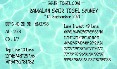 Kode Syair Sdy Rabu 1 September 2021 , meliputi forum syair sydney , Bocoran sdy serta prediksi togel sidney dan di lengkapi juga dengan data pengeluaran sdy 2021 .
