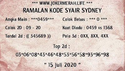 Kode Syair Sdy Rabu 15 Juli 2020 meliputi forum syair sydney , paito warna sdy serta prediksi togel sidney dan di lengkapi juga dengan data pengeluaran sdy 2020 .
