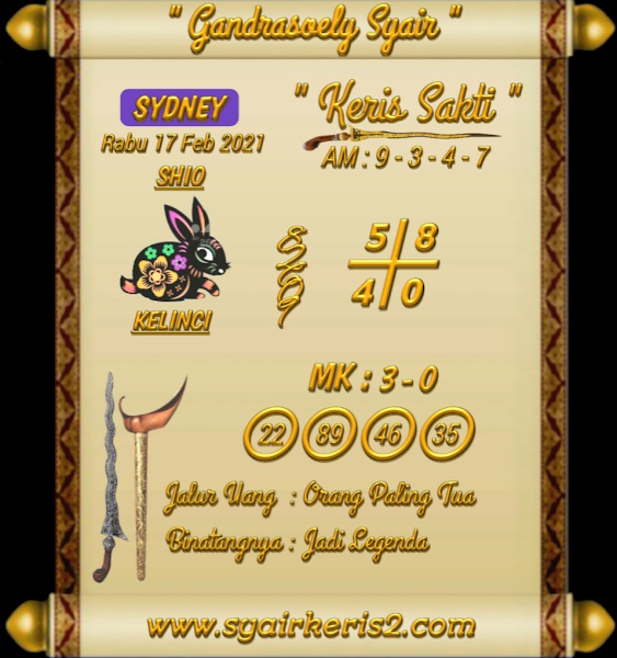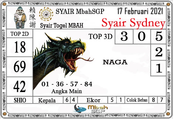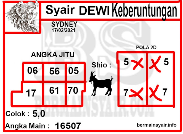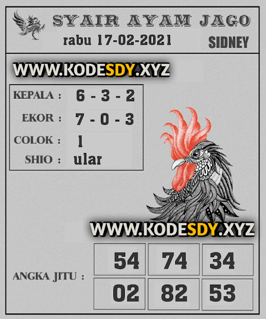 Kode Syair Sdy Rabu 17 Februari 2021, meliputi forum syair sydney , paito warna sdy serta prediksi togel sidney dan di lengkapi juga dengan data pengeluaran sdy 2020 .