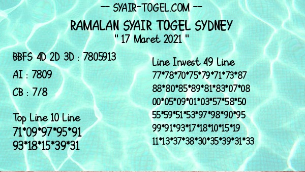 Syair Sdy Rabu 17 Maret 2021