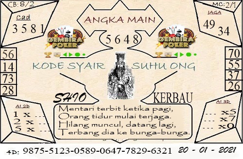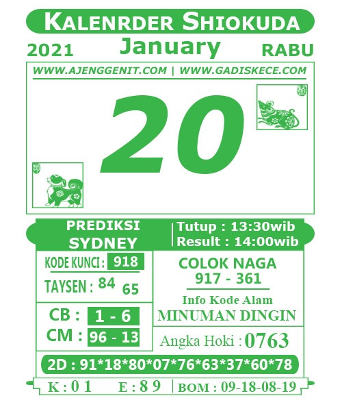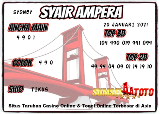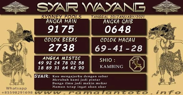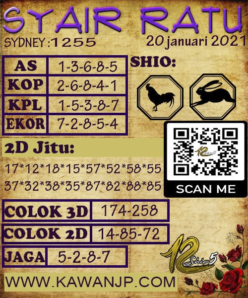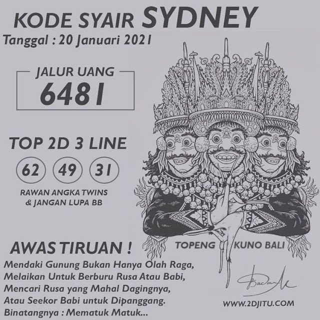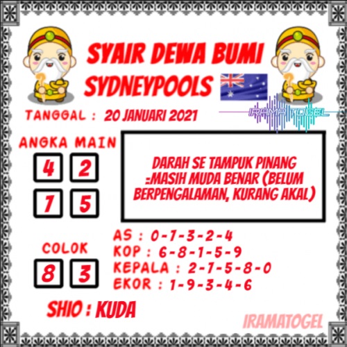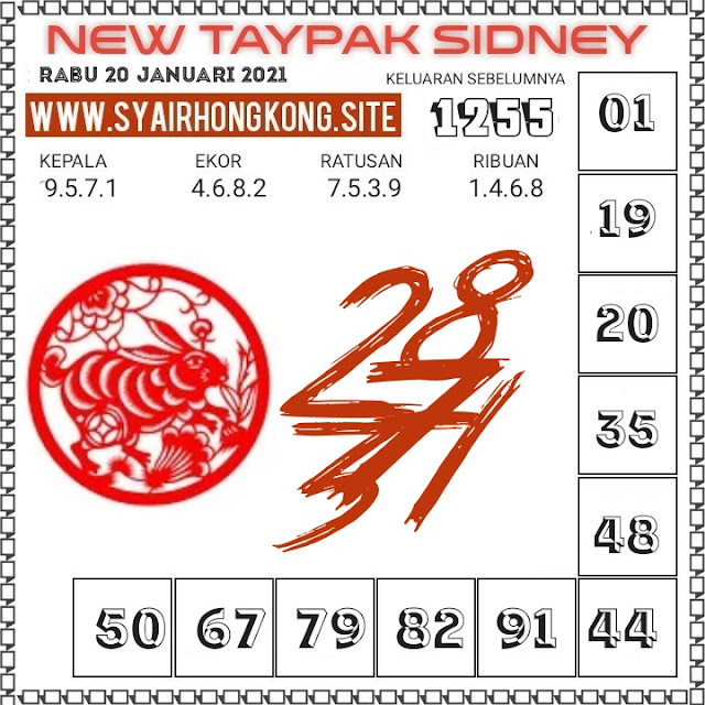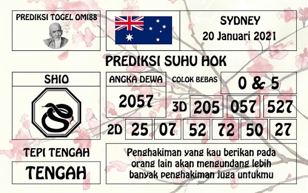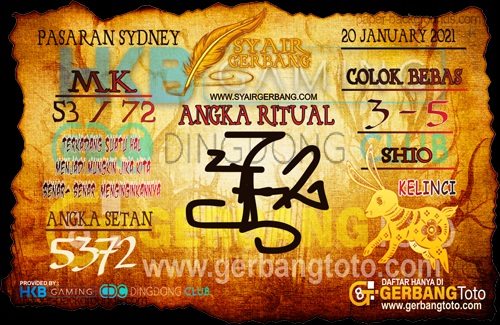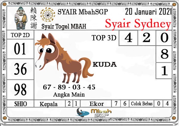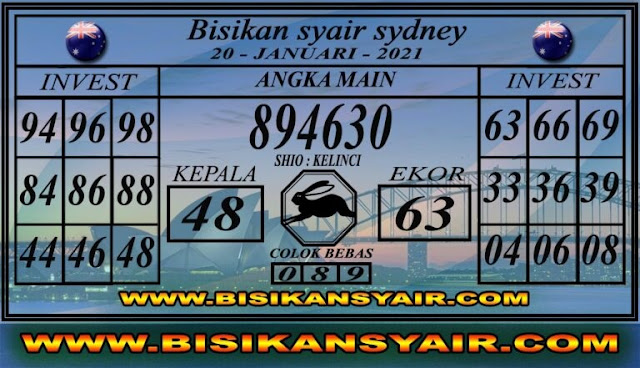 Kode Syair Sdy Rabu 20 Januari 2021 meliputi forum syair sydney , paito warna sdy serta prediksi togel sidney dan di lengkapi juga dengan data pengeluaran sdy 2020 .